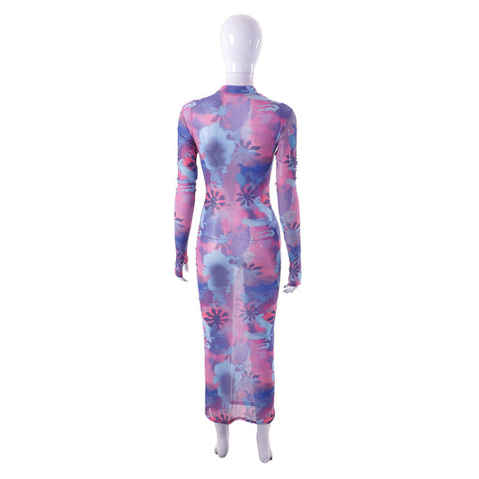 Gauze Printed Casual Long Dress