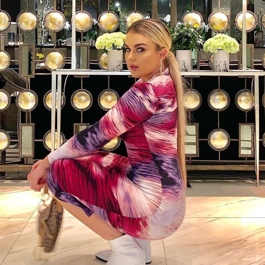 Printed Mesh See-Through Long-Sleeved Casual Suit