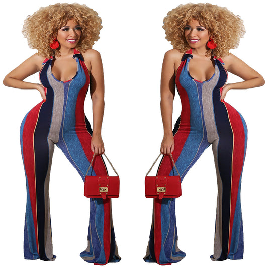 Striped slim-fit jumpsuit women