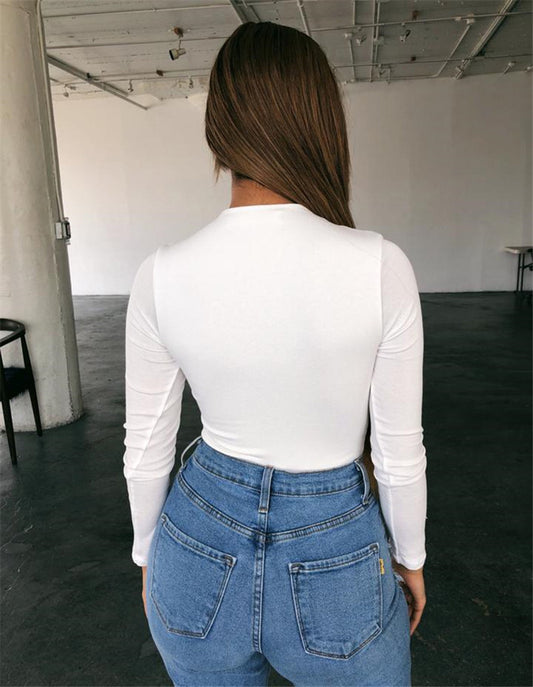 Women's Clothing Fashion Slim Long-sleeved Pullovers Tops Solid Causal Fit Shirts