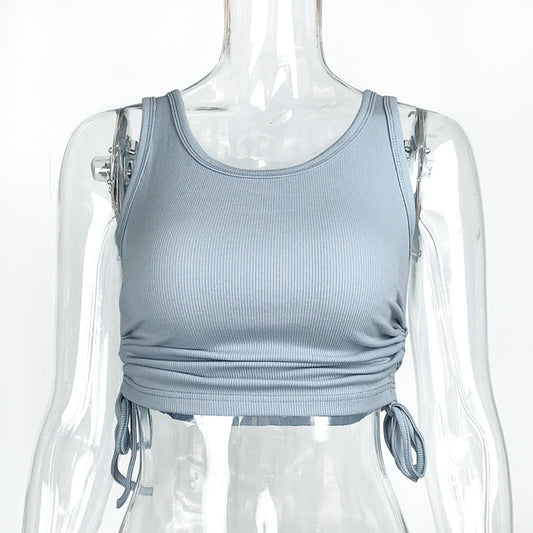 Simple Solid Ribbed Round Neckline Navel Crop Base Sleeveless Vest