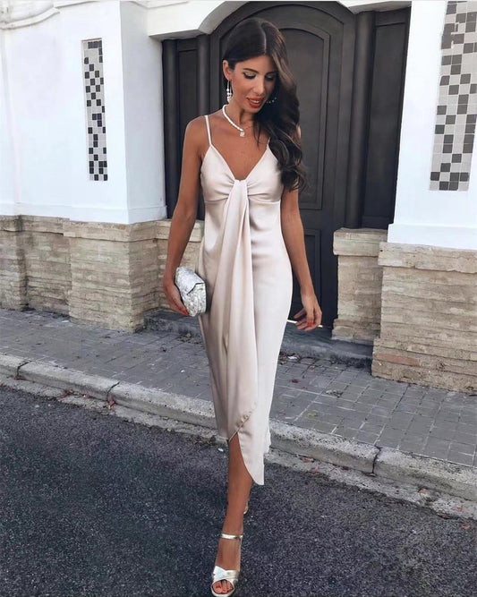 New Solid Color Cross Halter Temperament Sheath Dress For Women