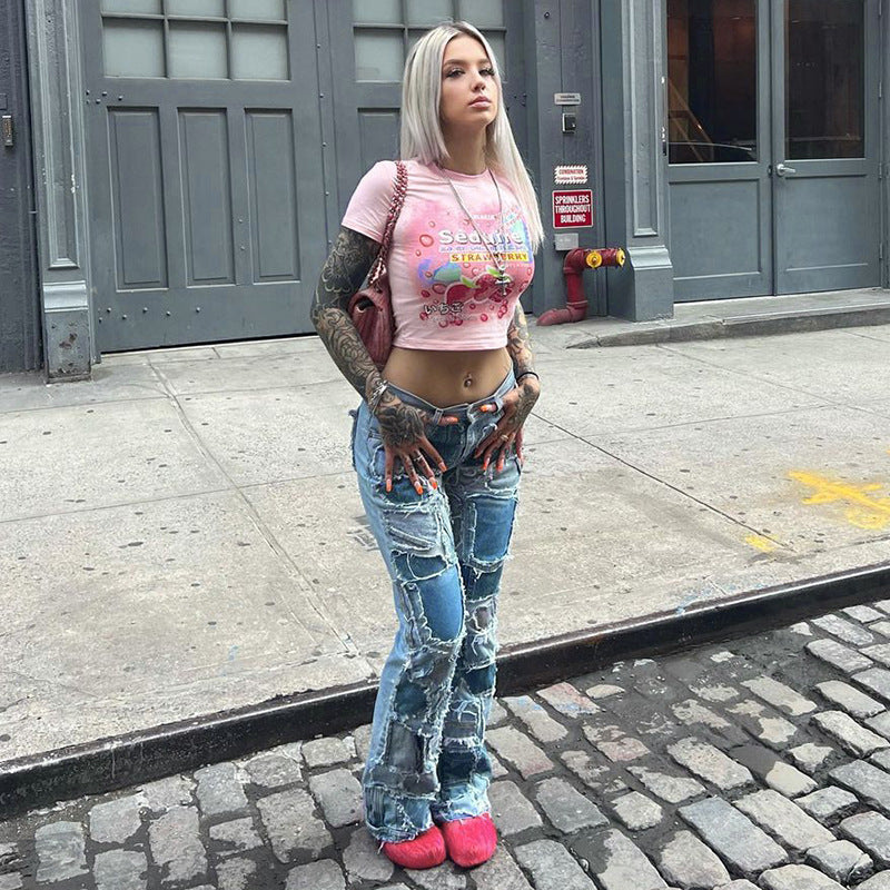 Crewneck Pink Printed Short-sleeved Summer Blouse For Women