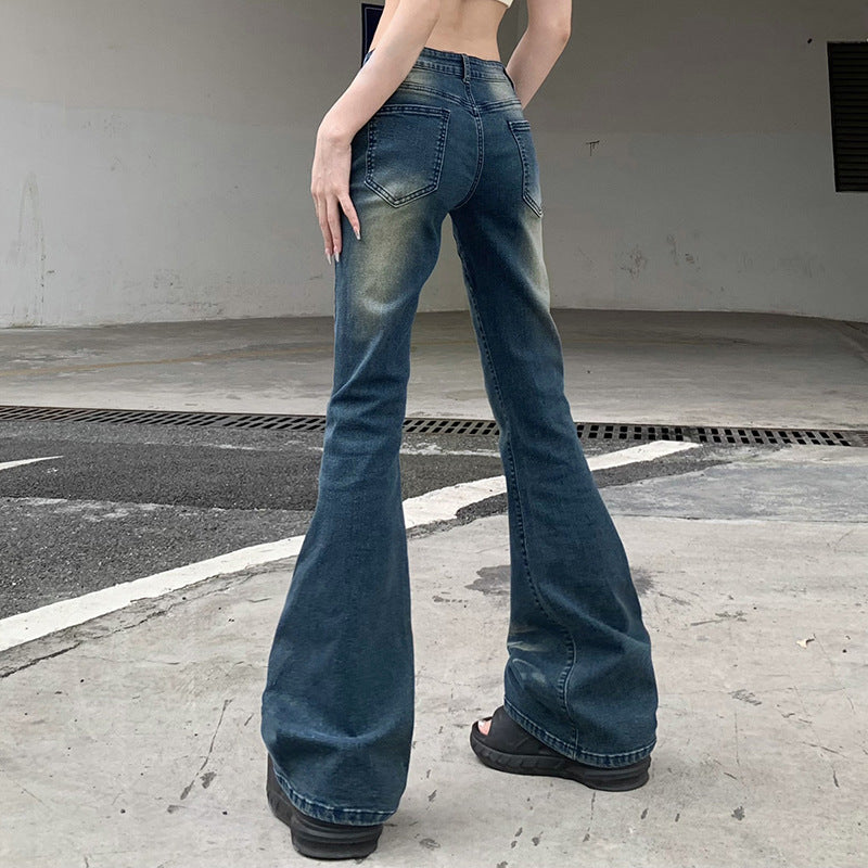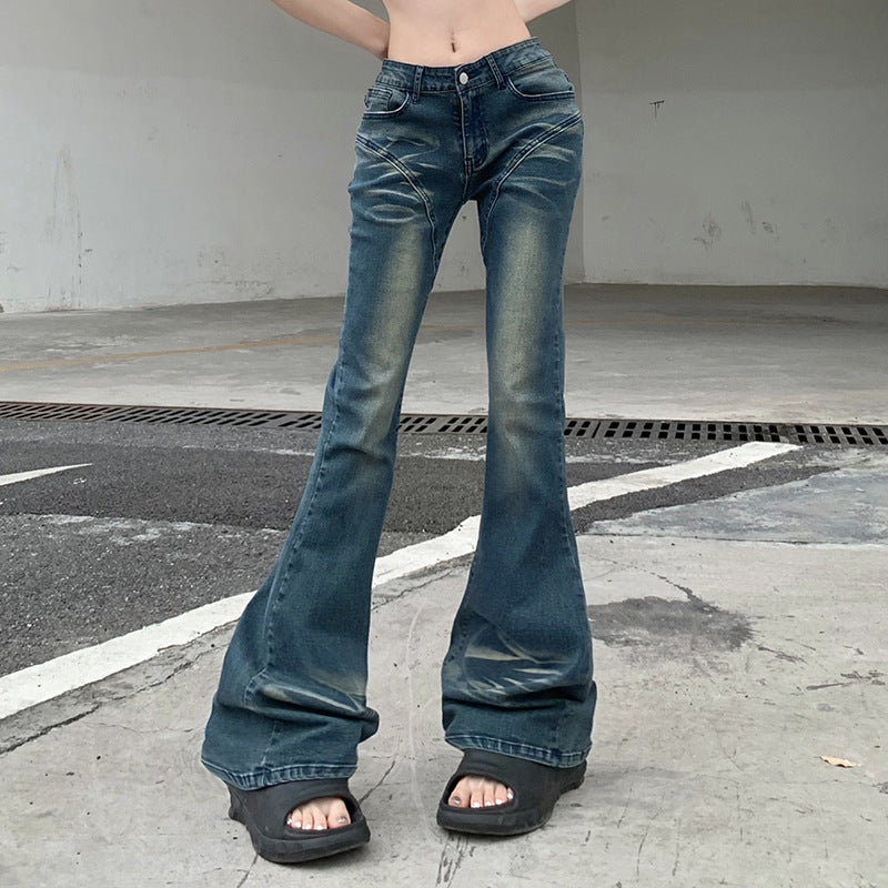 Cross-border Street Style Design Sense Gradient Split Splicing Flared Pants Spicy Girls High Waist Skinny Washed Jeans