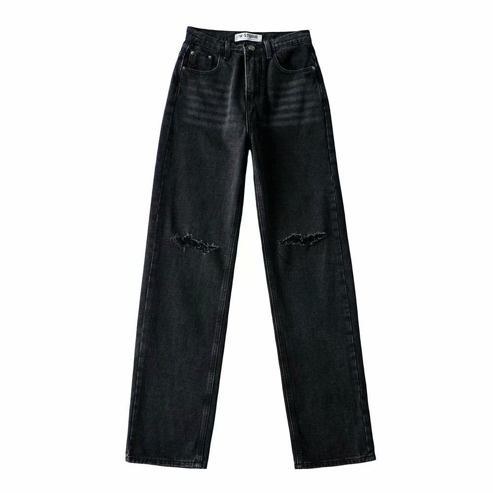 European And American Double-knee Holes Rolled Edge Mopping Jeans