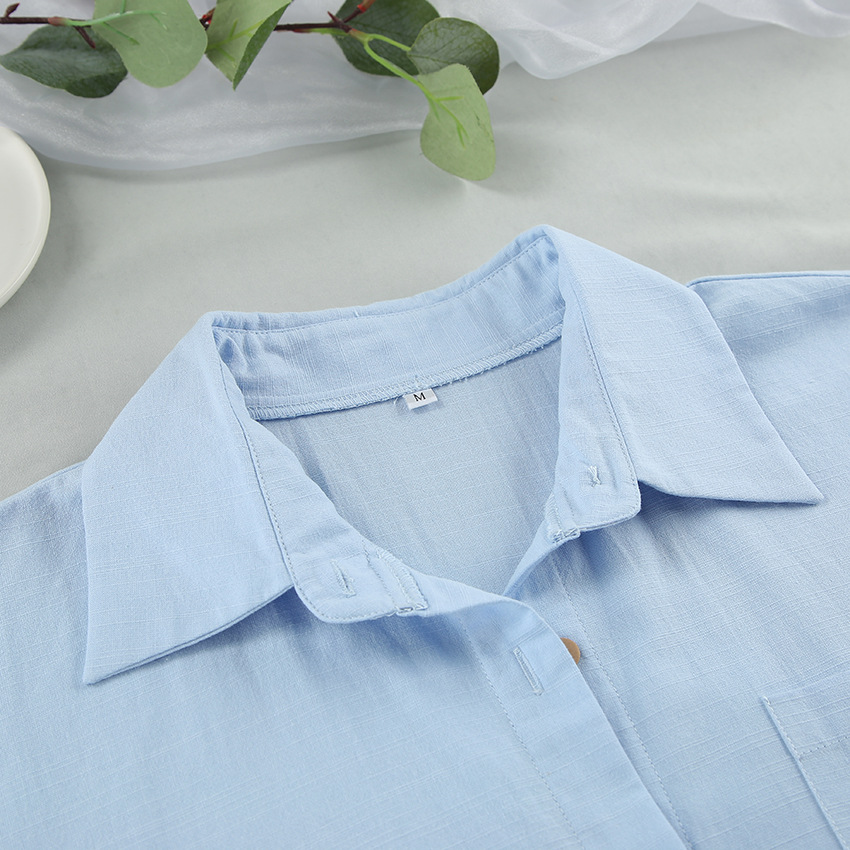 Fashion Cardigan Cotton And Linen Pure Color Comfort Pajamas Two-piece Set