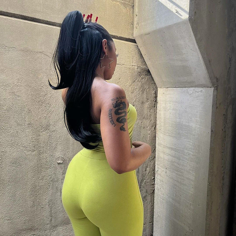 Fashion Summer Suit Embroidery Tube Top And High Waist Drawstring Bell-bottomed Pants Two-piece Set Womens Clothing