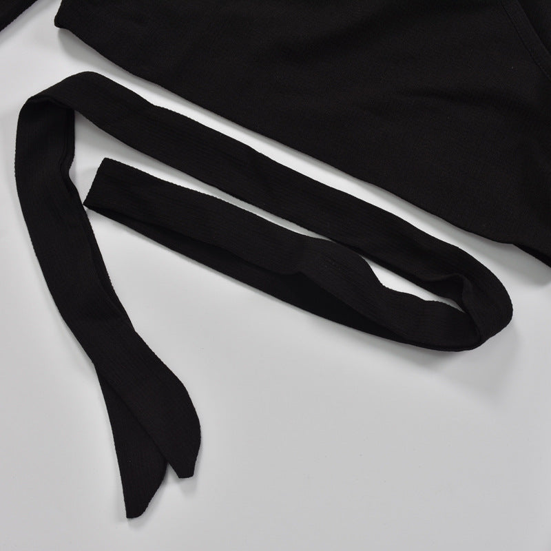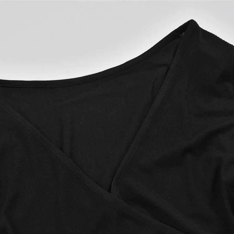 Hollow Lace-up Long-Sleeved V-Neck Sexy Blouse