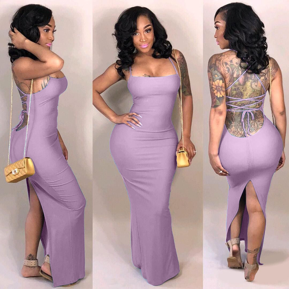 Hollow split solid color long dress