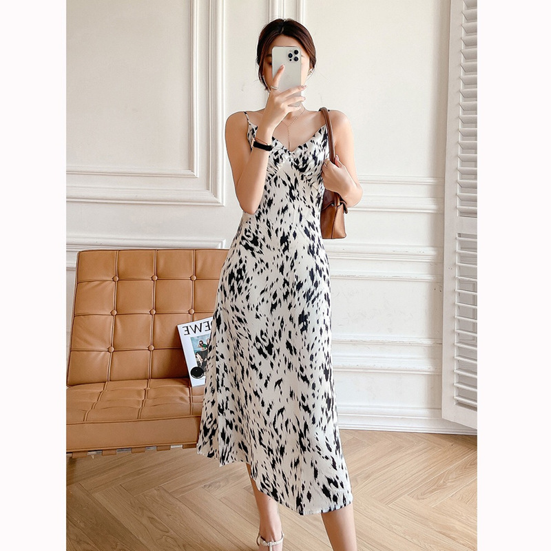 Ink Painting Print Suspender Dress Women's Spring And Summer French Floral Midi Skirt
