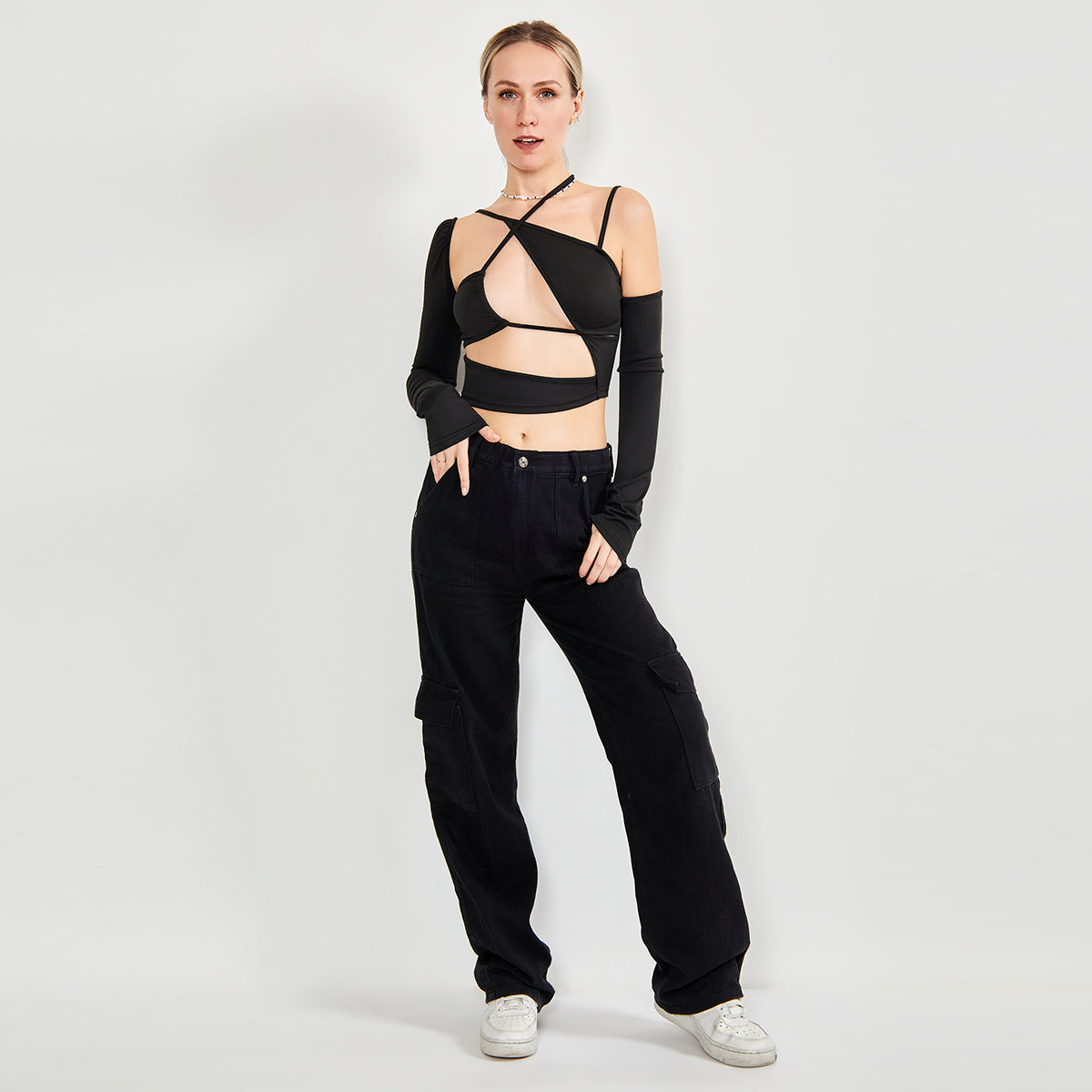 Long Sleeve Top Cut Out Asymmetrical Neck