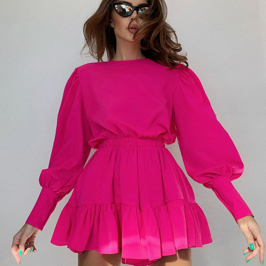 Mid-length Lantern-sleeved Waist Long-sleeved Dress