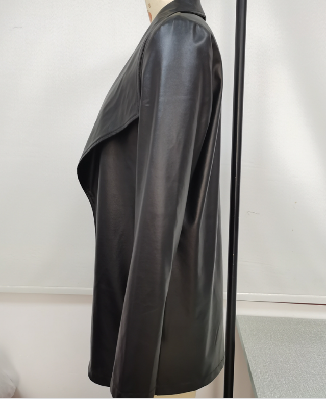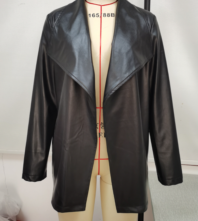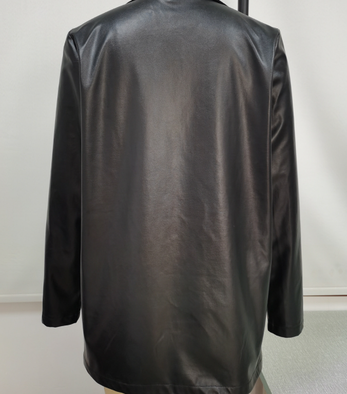 Mid-length PU Leather Suit Jacket With Lapel Slim Fit