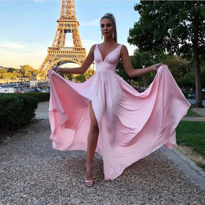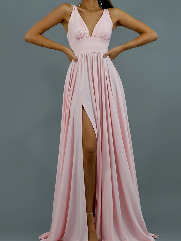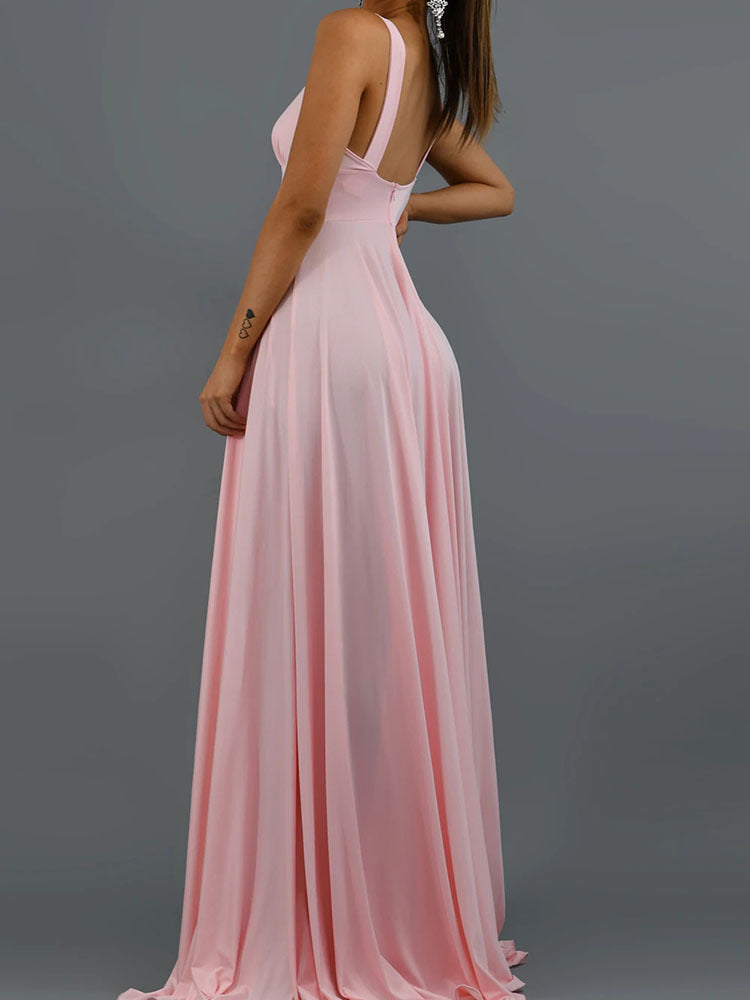 New Suspender High Waist Pure Color Split Expansion Skirt Backless Dress