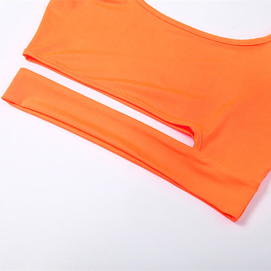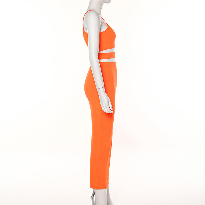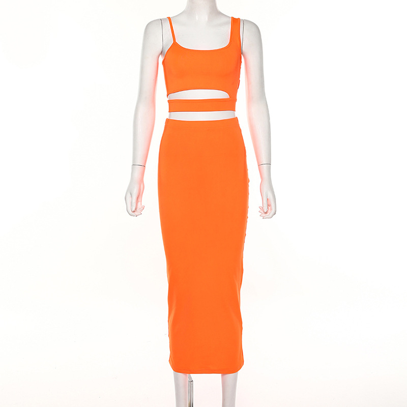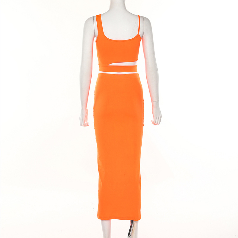 New women's sling round neck hollow two-piece skirt