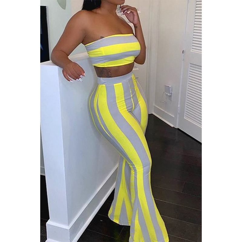 New Women's Suit Striped Printed Chest-Wrapped Flared Pants With Two-Piece Buttocks