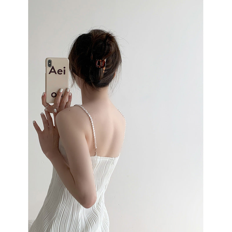 Pearl Metal Buckle Strap Cutout Slim Fit Dress