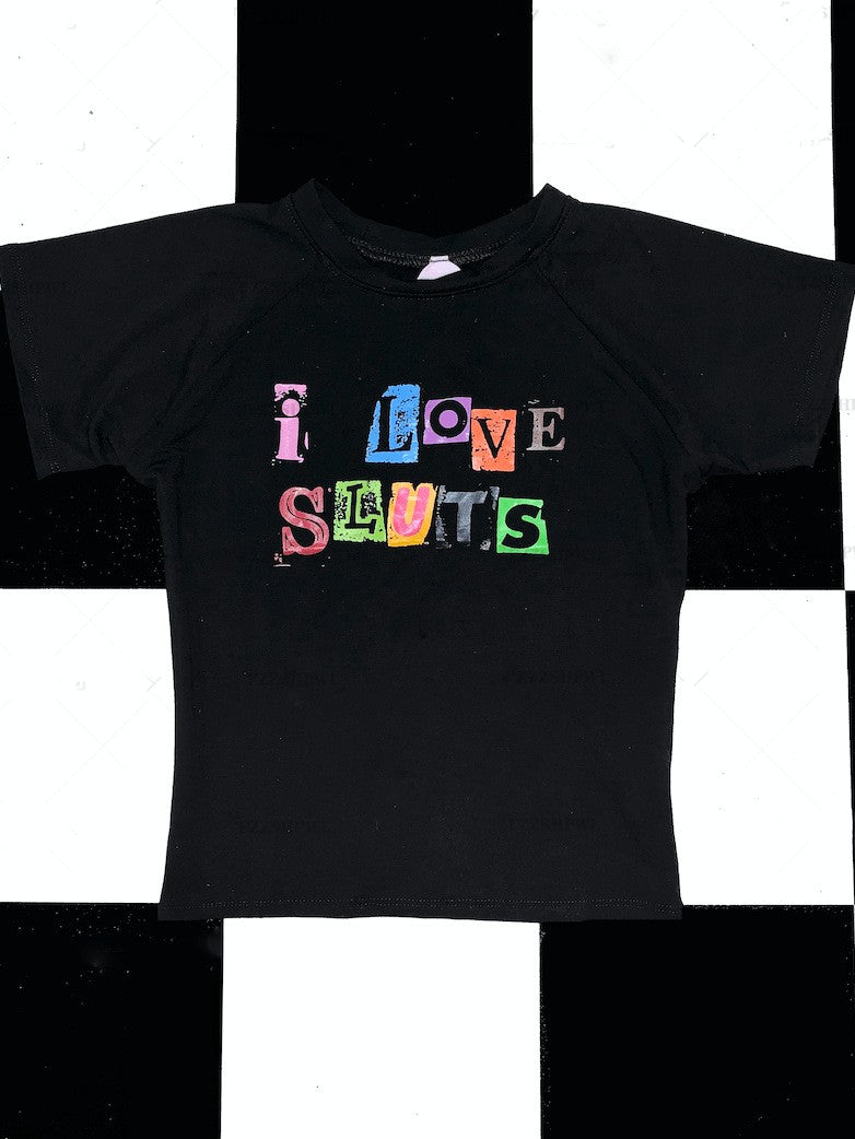 Printed Short-sleeved T-shirt Slim Fit Midriff-baring Round Neck Short Top