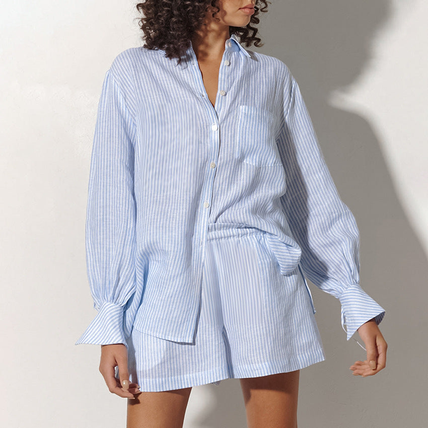 Pure Cotton Striped Shirt Outfit Ins Style Casual