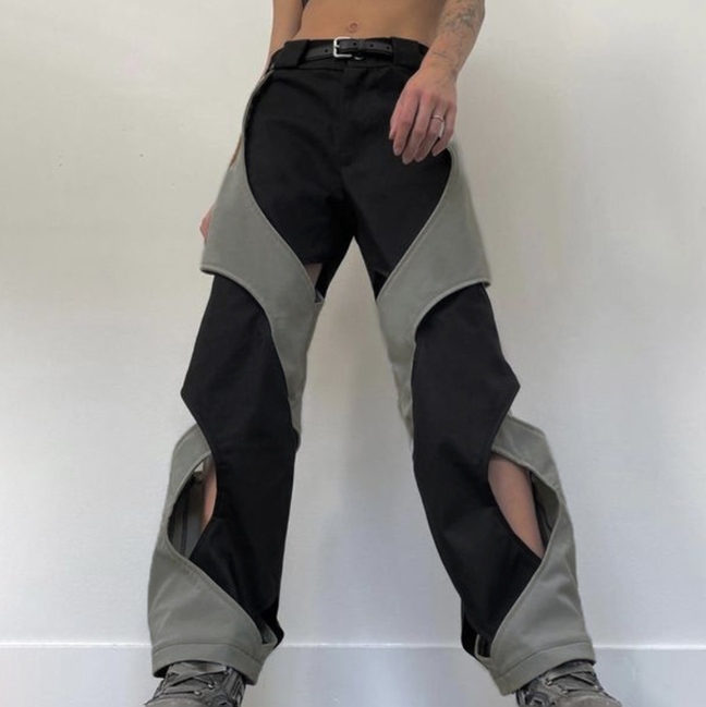 Street Chic Hollow-out Cross Design Contrast Color High Waist Woven Pants