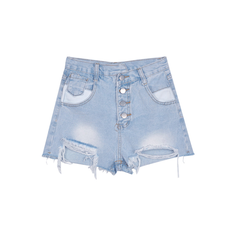 Summer Ladies Irregular Ripped Raw Edge Jeans