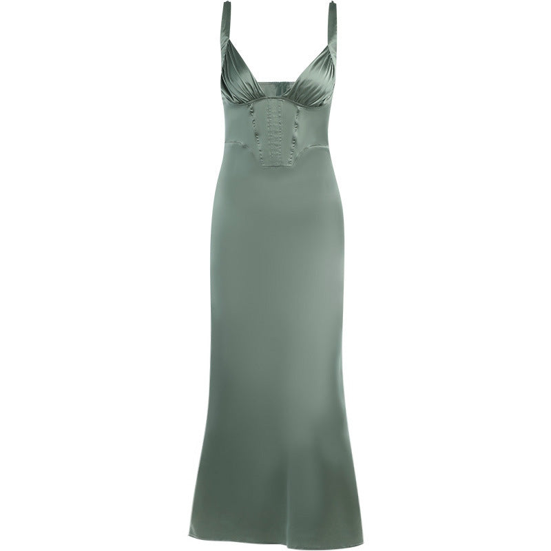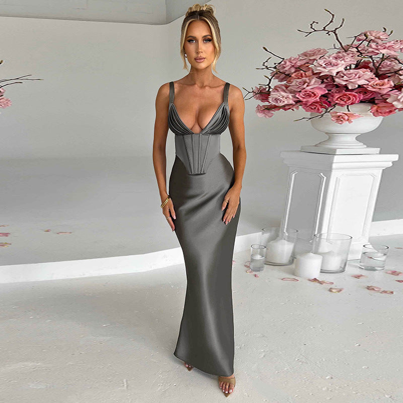 Women's Fashionable Elegant Deep V Satin Slim Strap Dress
