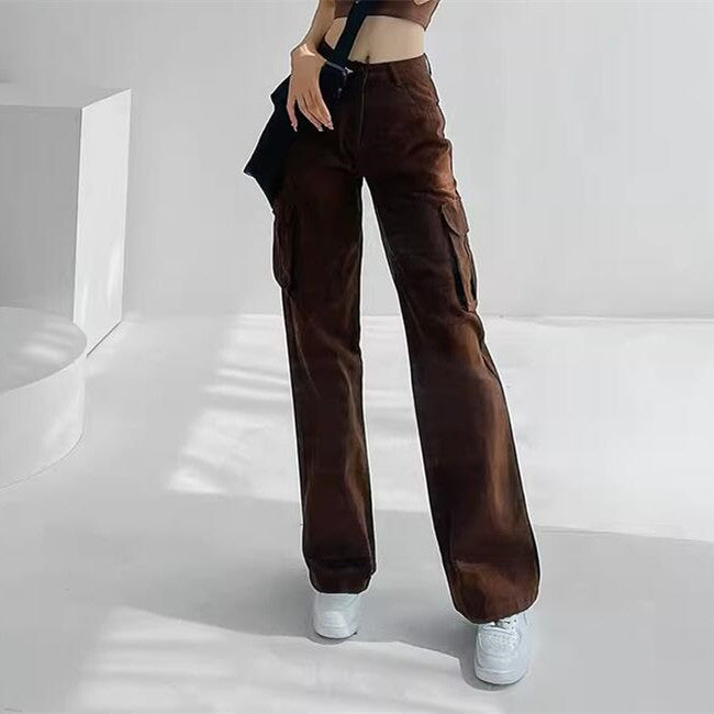 Women's High Waisted Wide Leg Casual Multi Pocket Loose Vintage Pants