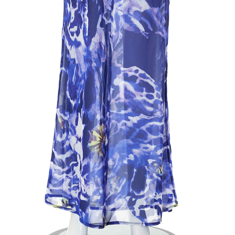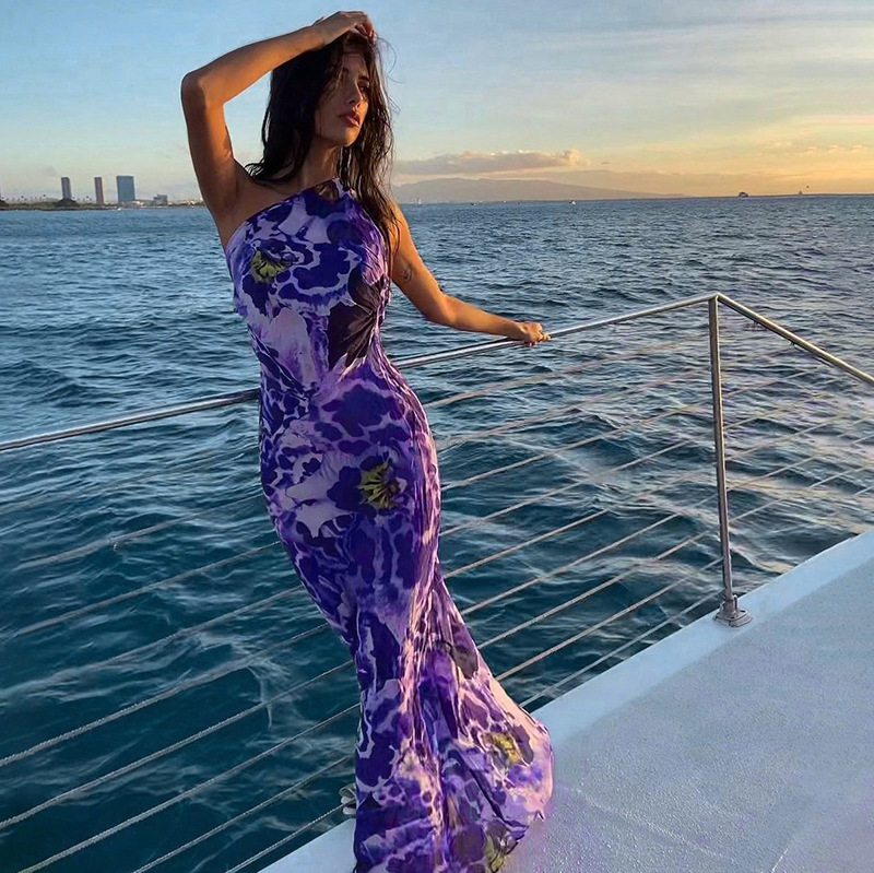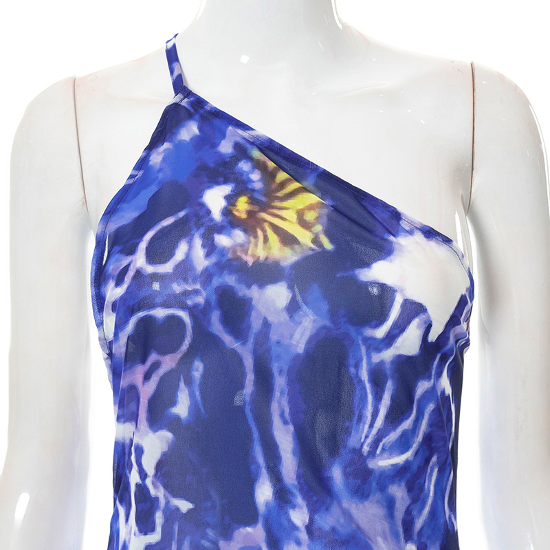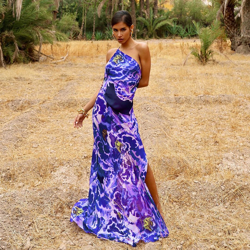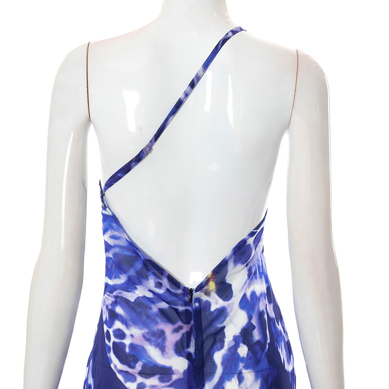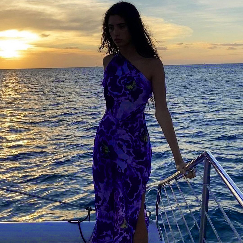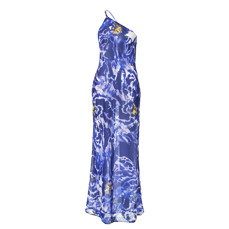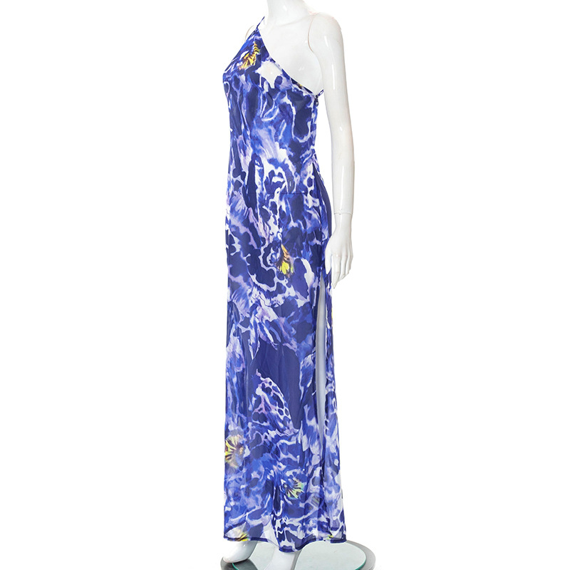 Women's Slanted Shoulder Sleeveless High Slit Chiffon Holiday Dress